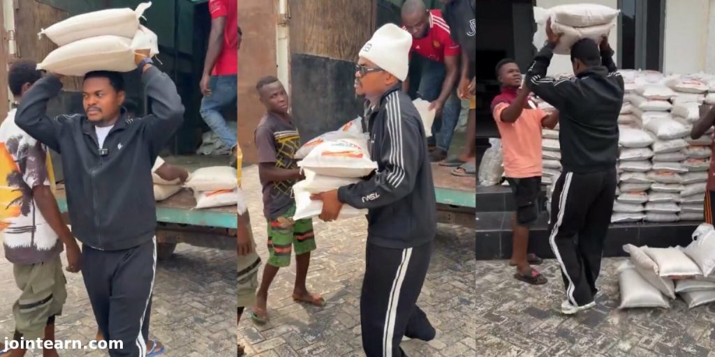 The socialite announced the gesture on his Instagram page, posting a video of a trailer offloading the large quantity of rice. He explained that unlike previous years—when he focused on distributing cash—he wanted this year’s outreach to be different.