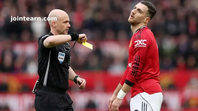 Referee Anthony Taylor immediately showed Dalot a yellow card. Video Assistant Referee (VAR) Craig Pawson reviewed the challenge and confirmed the on-field decision, deeming the contact “glancing and not with excessive force.”