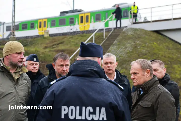 Polish Prime Minister Donald Tusk called the weekend explosion on the Warsaw-to-Ukraine railway line an “unprecedented act of sabotage”.