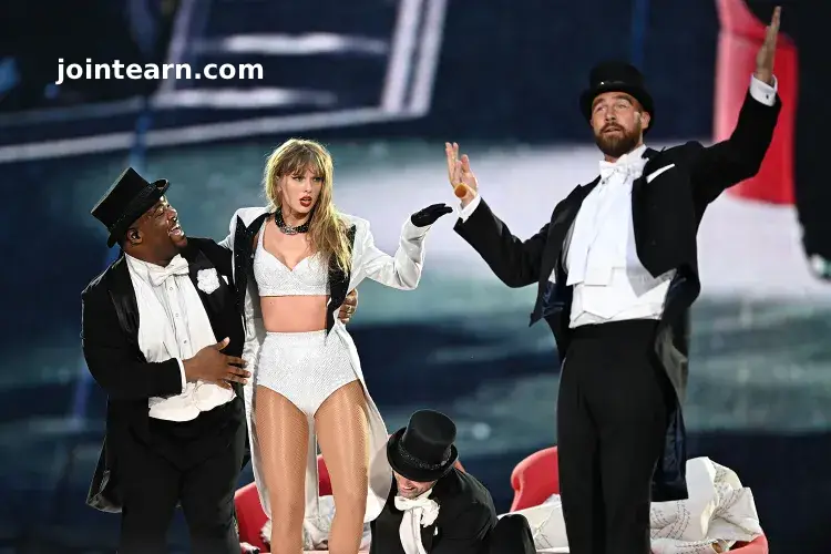 Kelce, dressed in a tuxedo and top hat, joined Swift on stage during an outfit change, taking over for the dancer who normally carries her during the segment. Fans got to see Kelce show off some of his signature dance moves, along with his big charming smile.