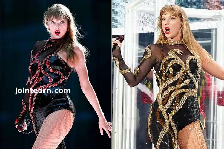 The new one-leg ensemble featured intricate snakes with gold details replacing the red accents from the original design, giving it a fresh yet familiar look for fans who had seen Swift wear the red-and-black version during the first 131 shows of the tour.